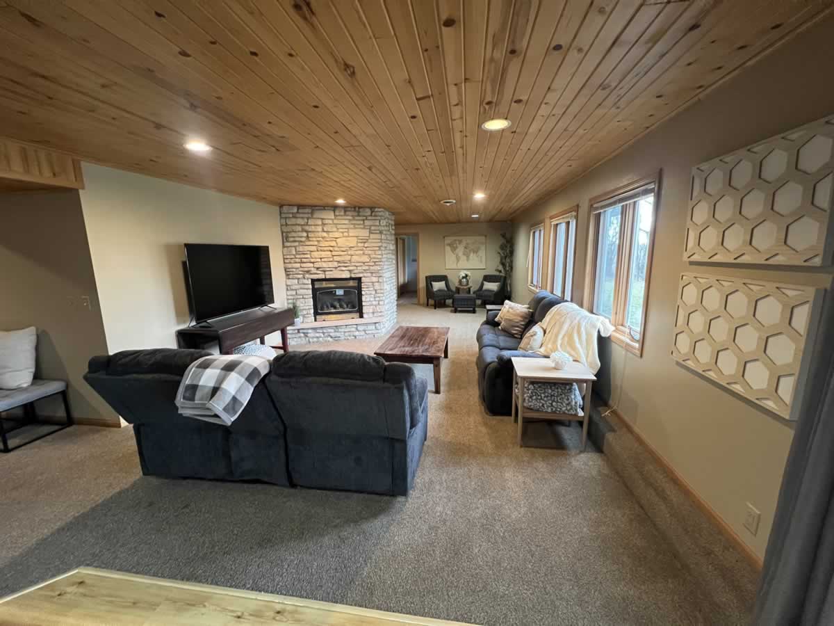 4 bedroom, 3 bath located in rural subdivision on a large private lot. Featuring main floor master bedroom suite. 2 fireplaces (1 wood, 1 gas) vaulted ceilings, finished full walkout basement with in-floor heat, 3 car attached garage, 2 car detached both heated, paved driveway, compliant septic.